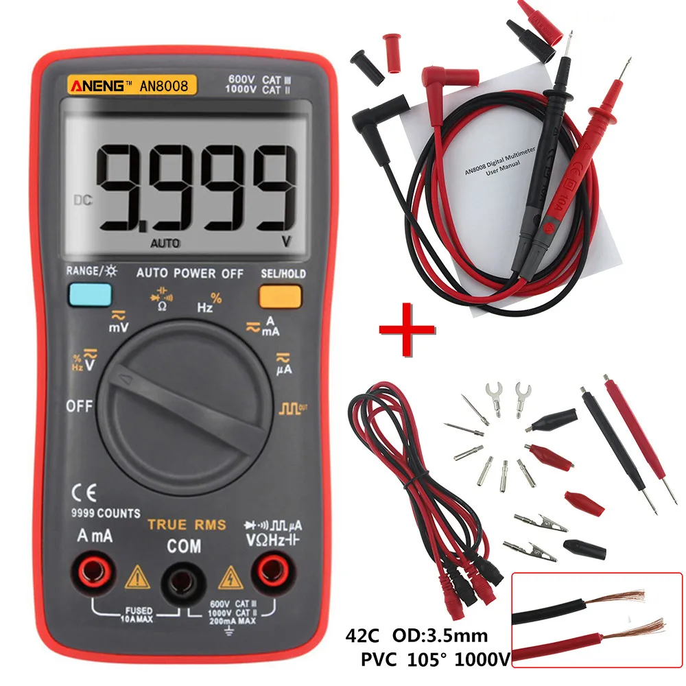 Best Price Hot ANENG AN8008 Auto/Manual Digital Multimeter 9999 counts With Backlight AC/DC Ammeter Voltmeter Ohm For Sale at AliExpress
