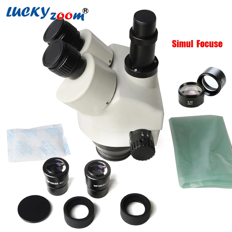 Best Seller Lucky Zoom Brand 3.5X-45X Simul-Focal Trinocular Zoom Stereo Microscope Head WF10X/20 SZM0.5X WD165mm Microscope Accessories For Sale at AliExpress