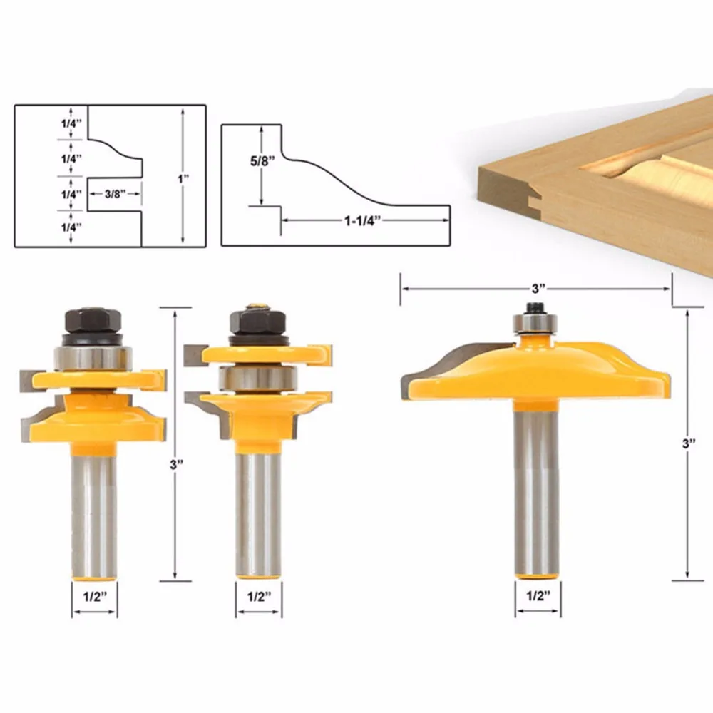 SALE 3Pcs 1/2'' Shank Rail & Stile Ogee Blade Cutter Panel Cabinet Router Bits Set
